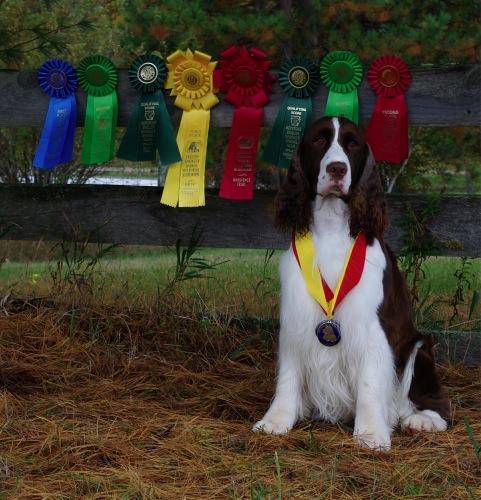 Marker with the ribbons in won at the ESSFTA National Specialty & Keystone ESS Club 3 Years later at the ESSFTA National Specialty, Grey Summit Missouri, 3 new titles! Am CD RN CGC